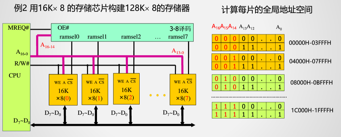 顺序方式:各存储体依次顺序定义地址空间,即字扩展方式,每个存储体中的地址是连续的。