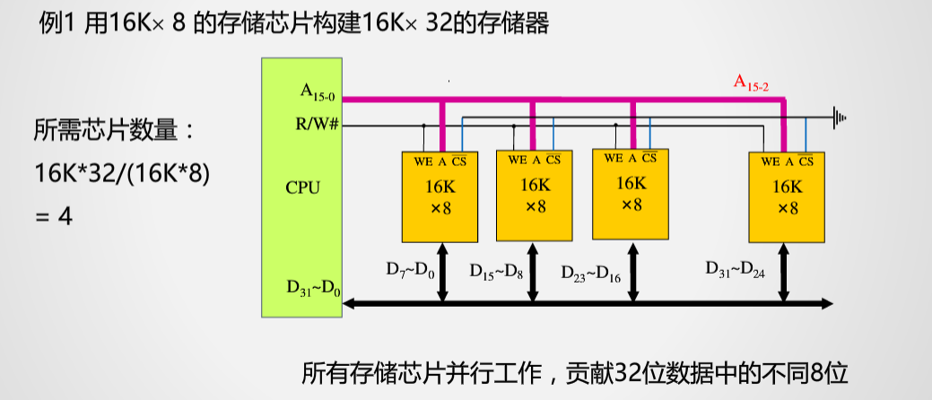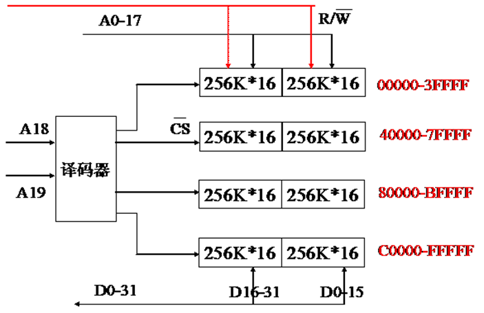 5、要求用256K * 16位SRAM芯片设计1024K * 32位的存储器。SRAM芯片有两个控制端:当 C S ‾ \overline {CS} CS 有效时,该片选中。当 W / R ‾ = 1 W/ \overline R =1 W/R=1时执行读操作,当 W / R ‾ = 0 W/ \overline R =0 W/R=0时执行写操作。