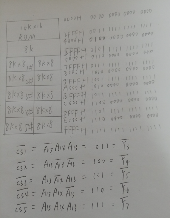 7、某机器中,已知配有一个地址空间为0000H–3FFFH的ROM区域。现在再用一个RAM芯片(8K * 8)形成40K * 16位的RAM区域,起始地址为6000H。假设RAM芯片有