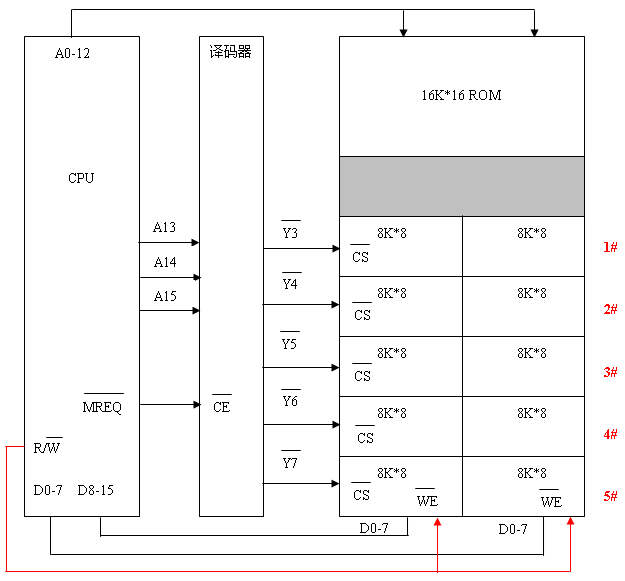 WE信号控制端。CPU的地址总线为A15-A0,数据总线为D15-D0,控制信号为